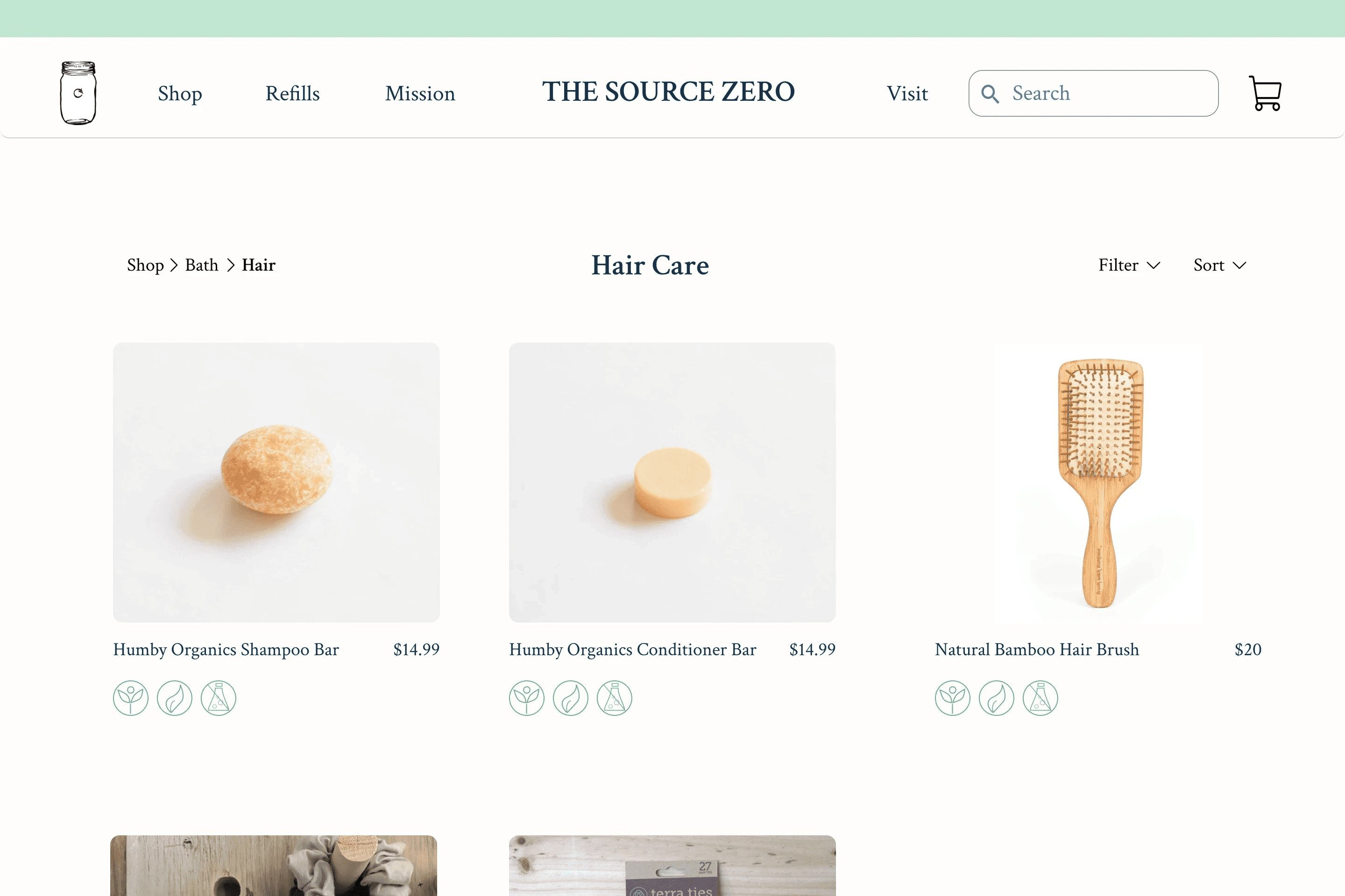 Change: Added icons that describe key sustainability qualities of the products (recycled packaging, biodegradable, etc.)